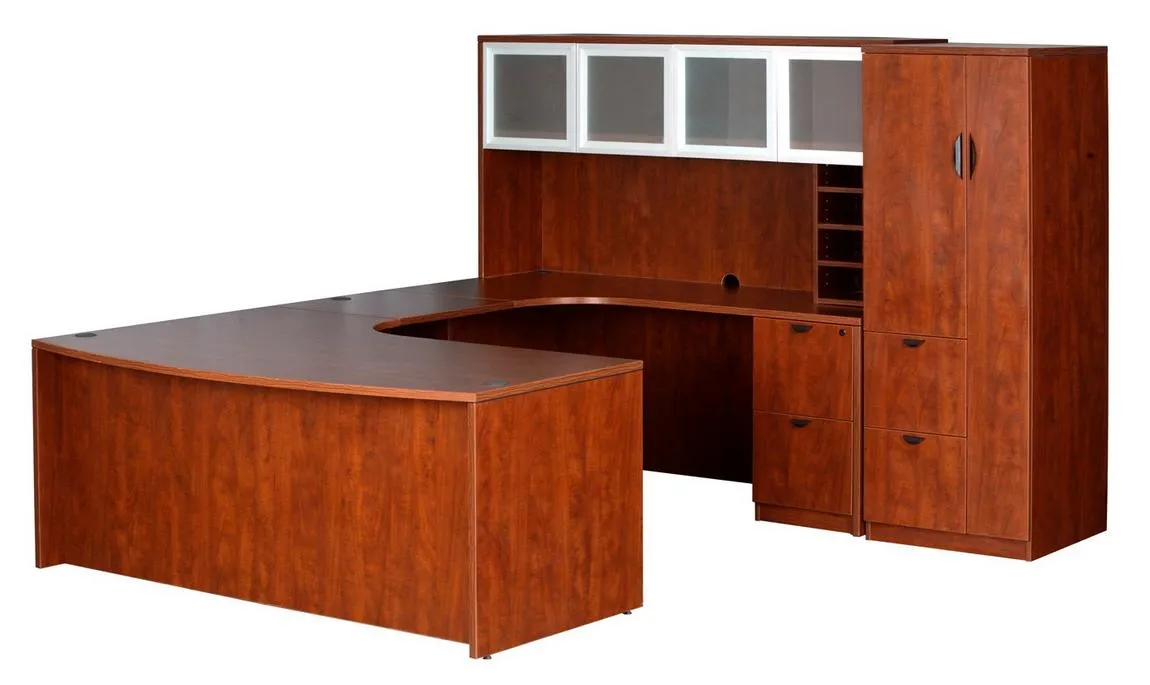 U Shape Desk with Hutch Drawers and Storage Cabinet