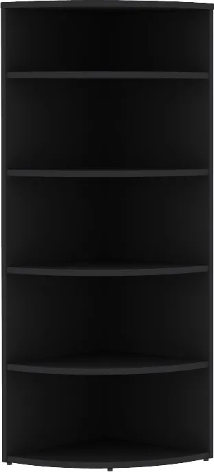 The large corner bookcase offers generous capacity in a footprint that stays out of the way. Five roomy shelves handle heavier reference materials and office supplies, with a curved face that keeps the setup looking clean. Available in different sizes and finishes, and backed by a 25-year manufacturer's warranty.