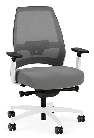 Ergonomic Office Chair with Lumbar SupportThe ergonomic computer chair is height adjustable with an adjustable seat and it has vinyl upholstery that's available in different colors, Nautical shown. It has a white frame with a graphite mesh back, 8-way adjustable arms and a built in lumbar support. Quality guaranteed by a 12-year manufacturer's warranty including the foam, 5 years for the mesh. This item is currently not available to purchase. Check out these related items: