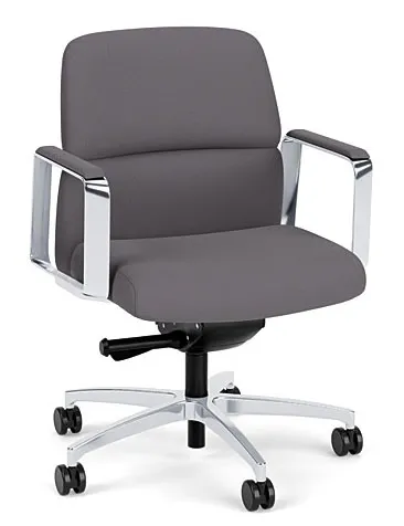 Fabric Mid Back Conference Room ChairThe Vero series mid-back chair has injection-molded foam and fabric upholstery that is available in different colors, Origin Iron shown. It also has a metal frame with fixed loop arms, upholstered armrests and a polished aluminum base. It can support up to 400 lbs. and it's backed by a 12-year manufacturer's warranty. This item is currently not available to purchase. Check out these related items: