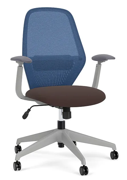 Mesh Back Office Chair with Lumbar SupportThe mesh back task chair is height adjustable with an adjustable seat, multi-position back lock and it has a vinyl upholstered seat that's available in different colors, Sterling vinyl shown. It has a Light Grey frame with a Blue mesh back, adjustable arms and a lumbar pillow insert. Quality backed by a 12-year manufacturer's warranty including the foam, 5 years for the mesh. This item is currently not available to purchase. Check out these related items:
