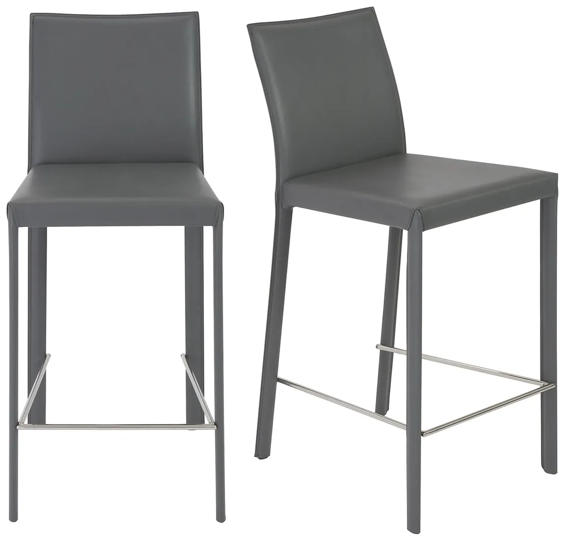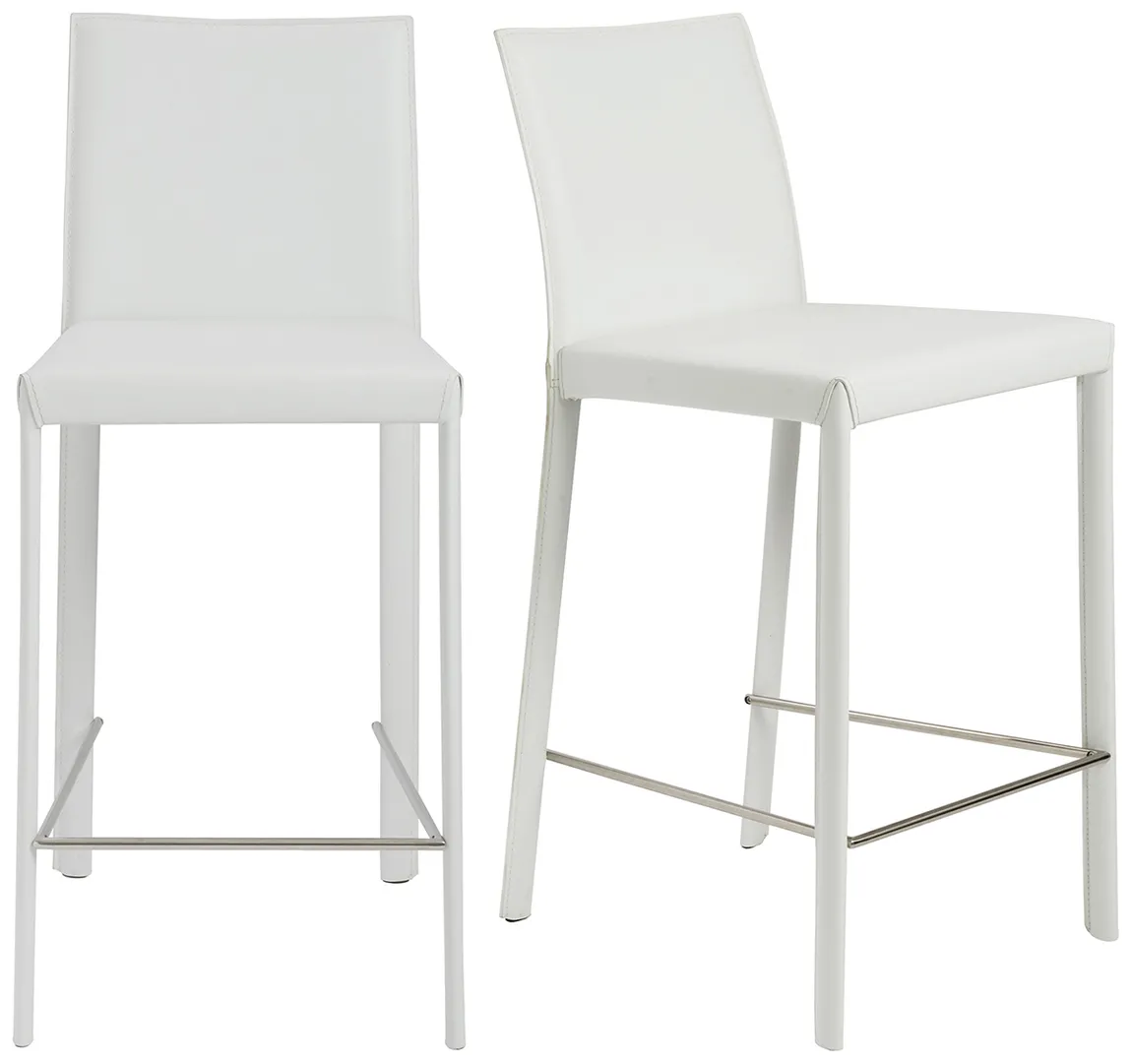 The polished counter stool brings elevated comfort and clean lines to modern interiors. Available in your choice of upholstery, this counter-height set features genuine leather, a curved back, and floor-safe feet. Ships fully assembled in a set of 2 with contract-grade durability and a 5-year manufacturer's warranty.