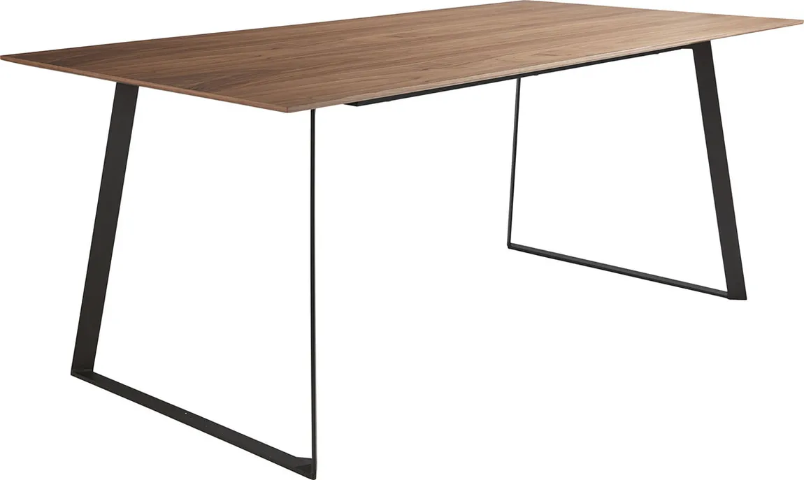 The timeless retro table pairs a walnut veneer top with a sturdy black steel base. Its spacious surface easily accommodates groups for meals or meetings in any modern setting. Built to contract-grade standards and backed by a 5-year manufacturer's warranty.