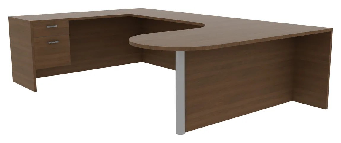 U Shaped Office DeskThis peninsula desk is available in multiple finishes, Sienna Mahogany shown, and comes together in three pieces to form a U shape and create a large work area. A rounded inside corner allows flexible computer placement, with multiple types of keyboard tray available for freeing up even more space on the worktop. Quality backed by a 10-year manufacturer's warranty. This item is currently not available to purchase. Check out these related items: