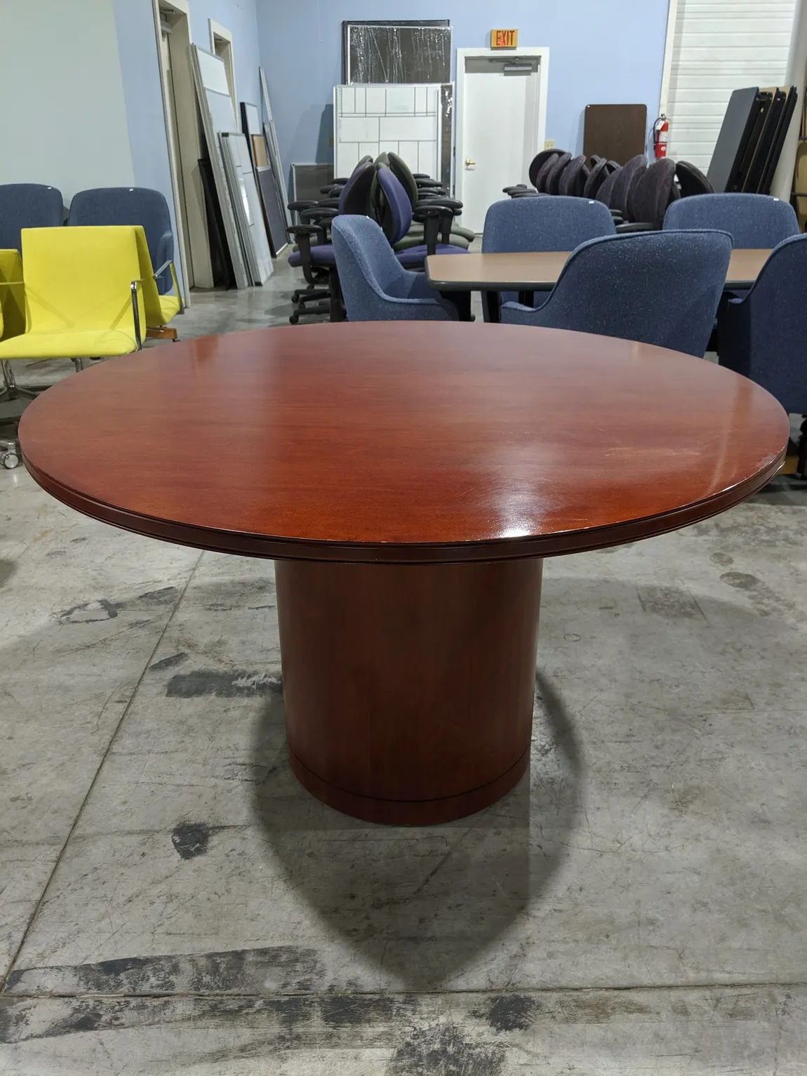 48†Round Solid Wood Cherry Conference Meeting TableThis round solid wood cherry conference meeting table measures 48Wx30H and is in excellent condition. This item is currently not available to purchase. Check out these related items: